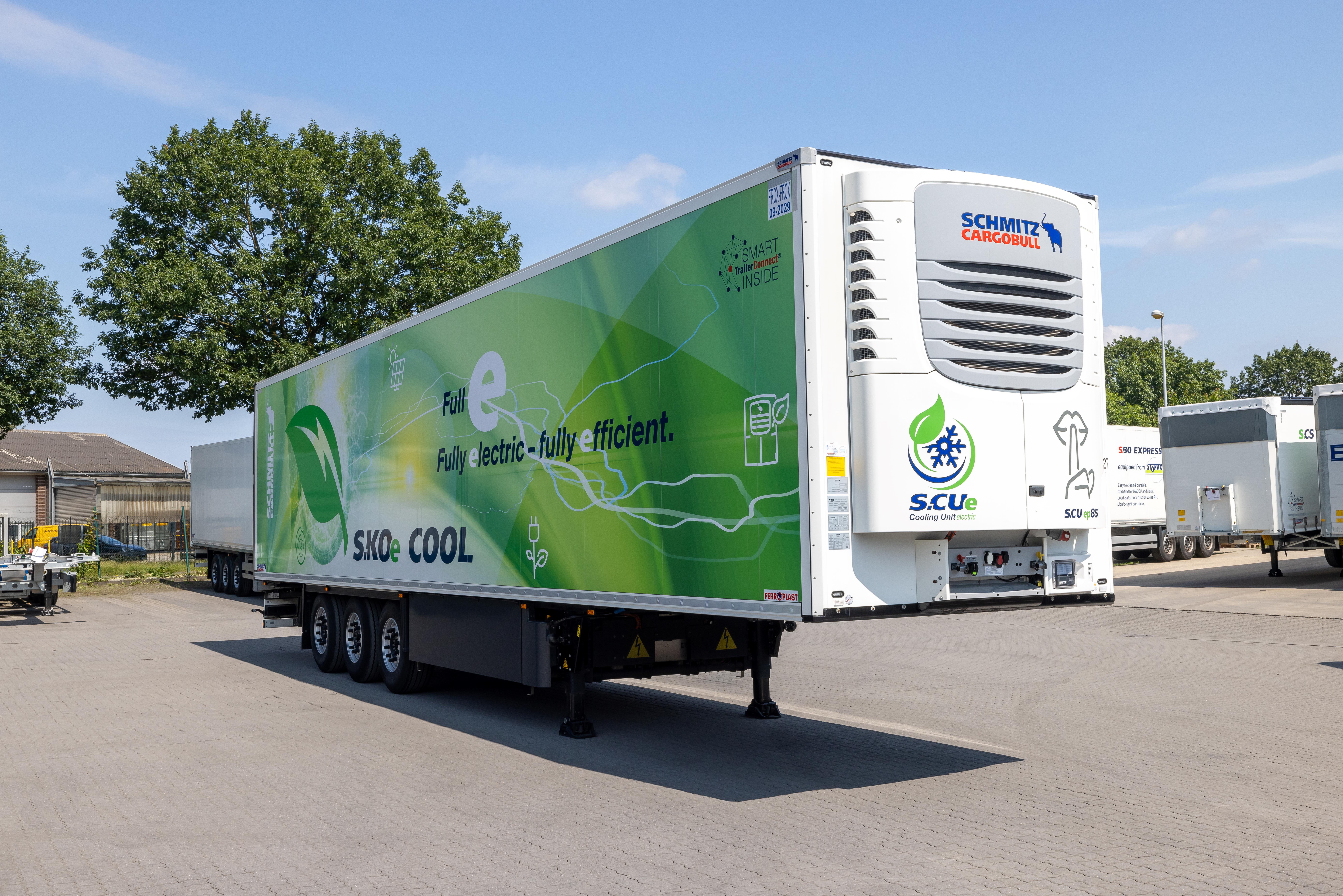 Schmitz Cargobull launched the all-electric S.KOe COOL refrigerated box body semi-trailer with electric cooling unit with built-in power electronics, high-voltage battery system and electric generator axle, for the emission-free transport of temperature-controlled freight.