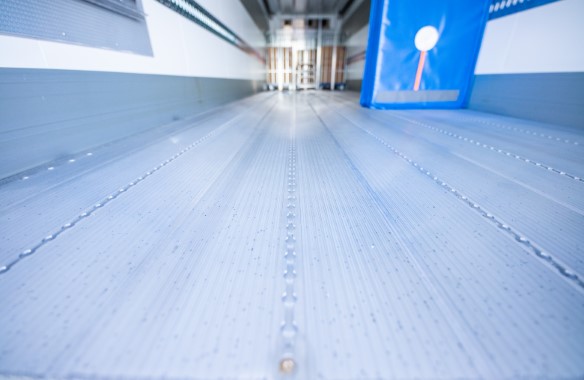 Изолираният под с въздушна система позволява бързо, лесно и гъвкаво вертикално закрепване на товара, като той може да бъде закрепен от две страни във всяка точка на надстройката. Идеален за транспортиране на колички.