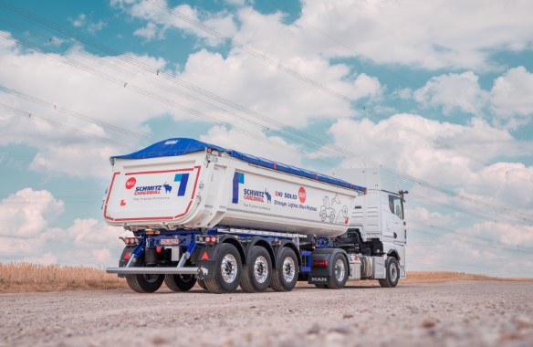 Самосвалните ремаркета за транспортиране на насипни материали и асфалт са оборудвани с нов пневматичен предпазител за долната част за отчитане на позицията на шофиране и разтоварване. Новият предпазител подобрява гъвкавостта, повишава безопасността при работа и намалява щетите по време в случай на обръщане. Водачът може да види позицията на защитния предпазител в огледалото за обратно виждане чрез заден LED индикатор. Предпазителят на дъното може да се управлява от кабината за повишена безопасност.