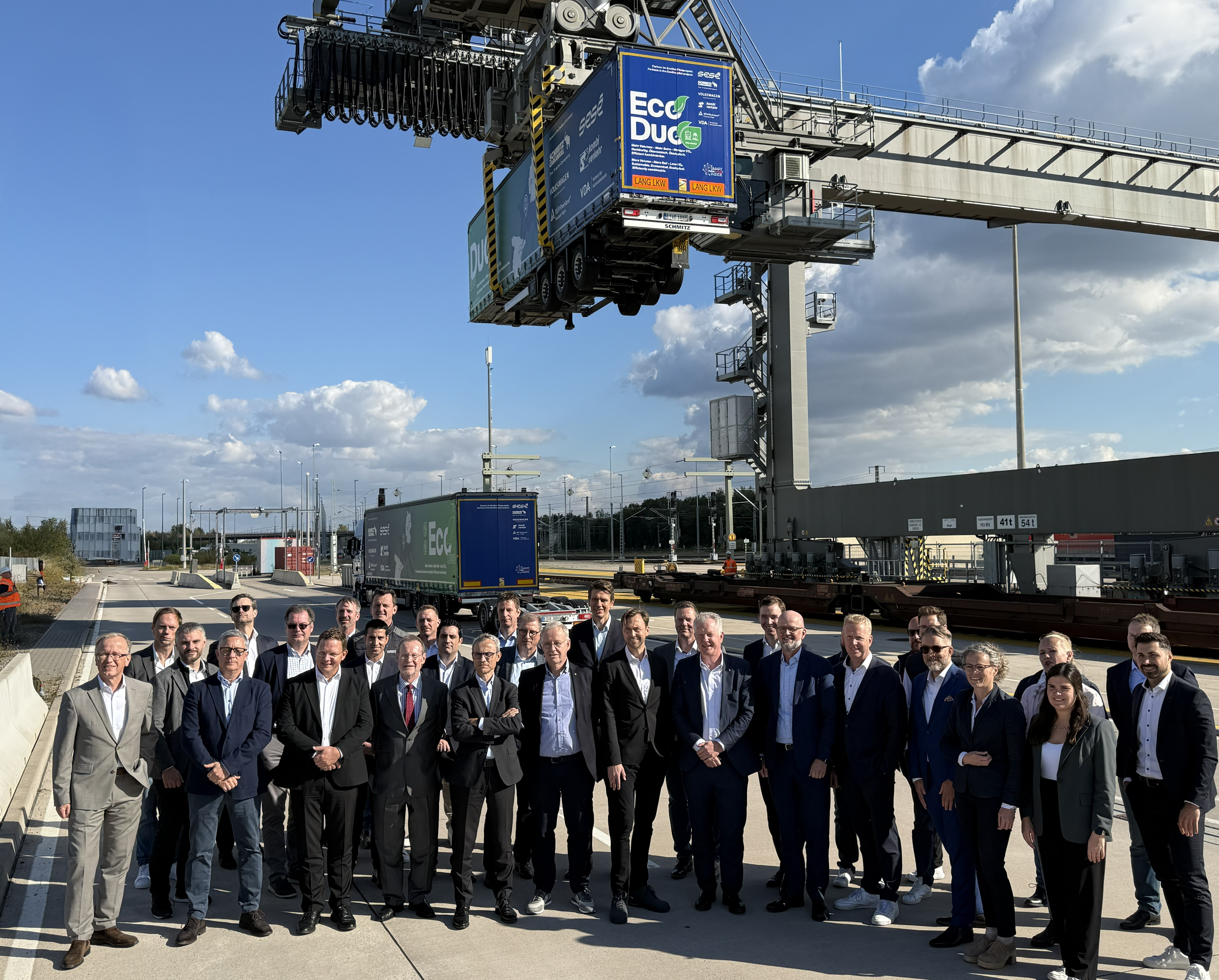 Oktober 2025 - Nach einem Jahr intensiver Praxistests zwischen Wolfsburg, Lehrte und Barcelona wurde das EcoDuo-Pilotprojekt in Deutschland erfolgreich abgeschlossen. Der EcoDuo, eine Fahrzeugkombination aus zwei Standard-Sattelaufliegern, verbunden über einen Dolly und gezogen von nur einer Zugmaschine, hat sich im Vor- und Nachlauf des Kombinierten Verkehrs als effizient, sicher und klimafreundlich erwiesen.