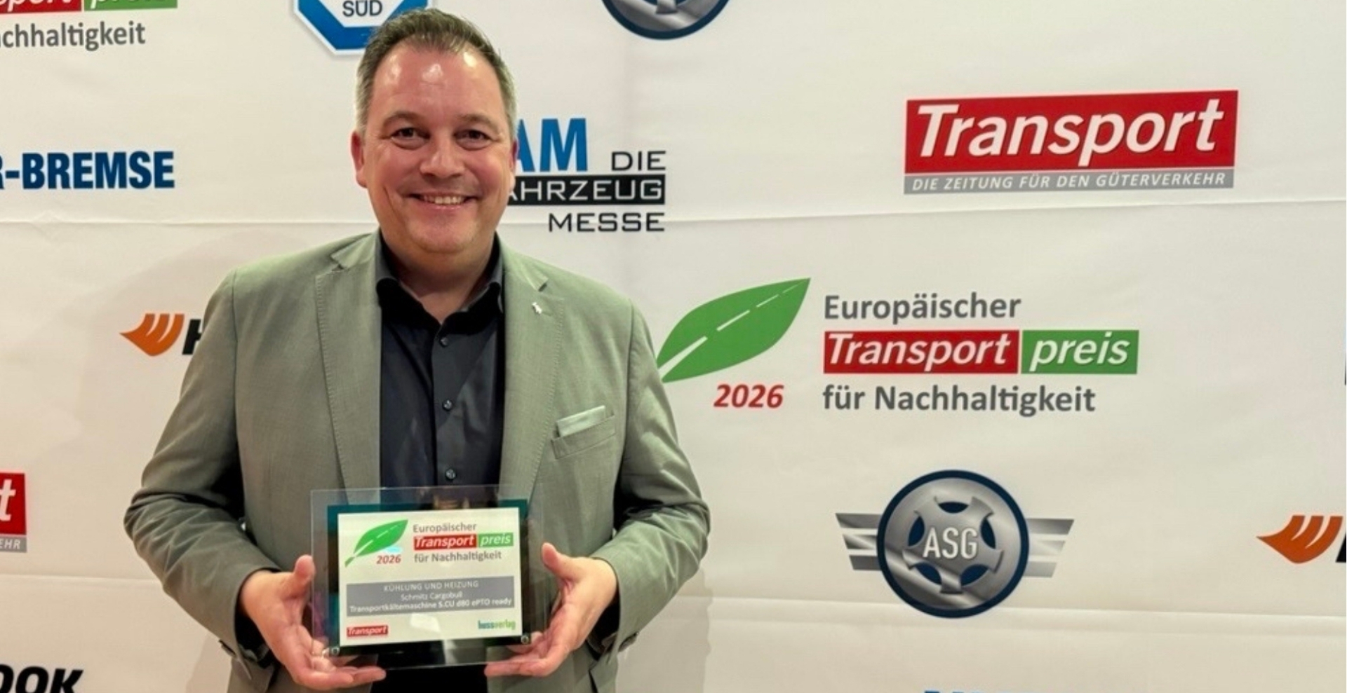November 2025 – Schmitz Cargobull wurde erneut mit dem renommierten „Europäischen Transportpreis für Nachhaltigkeit“ des HUSS-Verlags (Deutschland) ausgezeichnet. Dieses Jahr in der Kategorie „Kühlung und Heizung“ für die hybride Transportkältemaschine S.CU d80 ePTO ready. Die prämierte Transportkältemaschine unterstützt Transportunternehmen bei der Umstellung auf alternative Antriebe. Die S.CU d80 ePTO ready kann über den elektrischen Nebenabtrieb (ePTO, electric Power Take-off) einer E-Sattelzugmaschine vollständig emissionsfrei betrieben werden und bietet gleichzeitig höchste Betriebssicherheit durch den integrierten Dieselgenerator. Damit ermöglicht sie einen wirtschaftlichen und flexiblen Einstieg in die Dekarbonisierung des temperaturgeführten Transports.