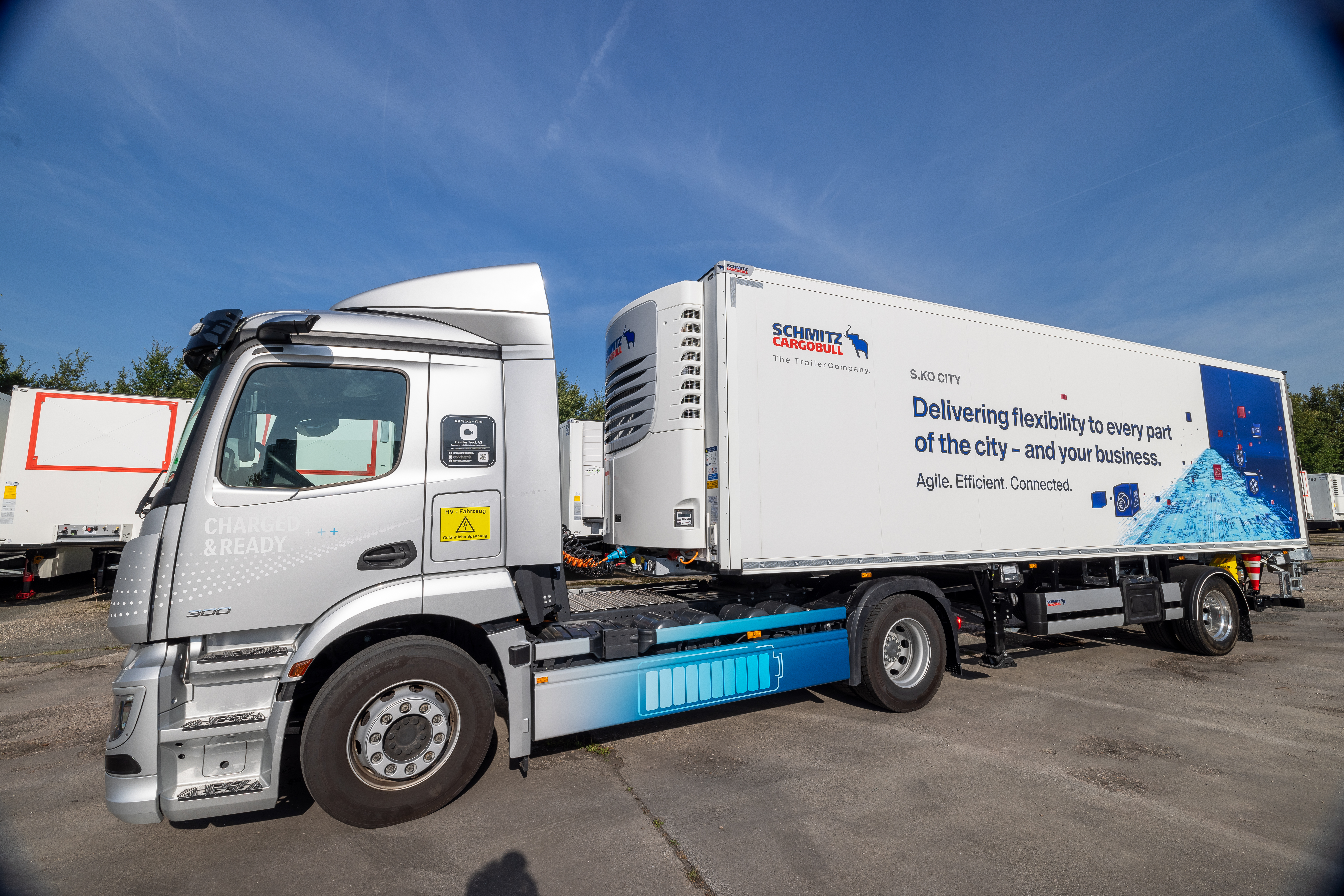 An ePTO interface connecting the cooling unit to an electric tractor unit provides the most economical means of ensuring emission-free cooling in a refrigerated semi-trailer. This eliminates the need to equip the refrigerated box body semi-trailer with expensive battery and charging technology and also enables the trailer to be operated cost-effectively with a full payload. At IAA TRANSPORTATION 2024, Schmitz Cargobull will present the S.CU d80 ePTO ready at its stand, and the outdoor area in combination with an electric Mercedes-Benz eActros 300 tractor unit.