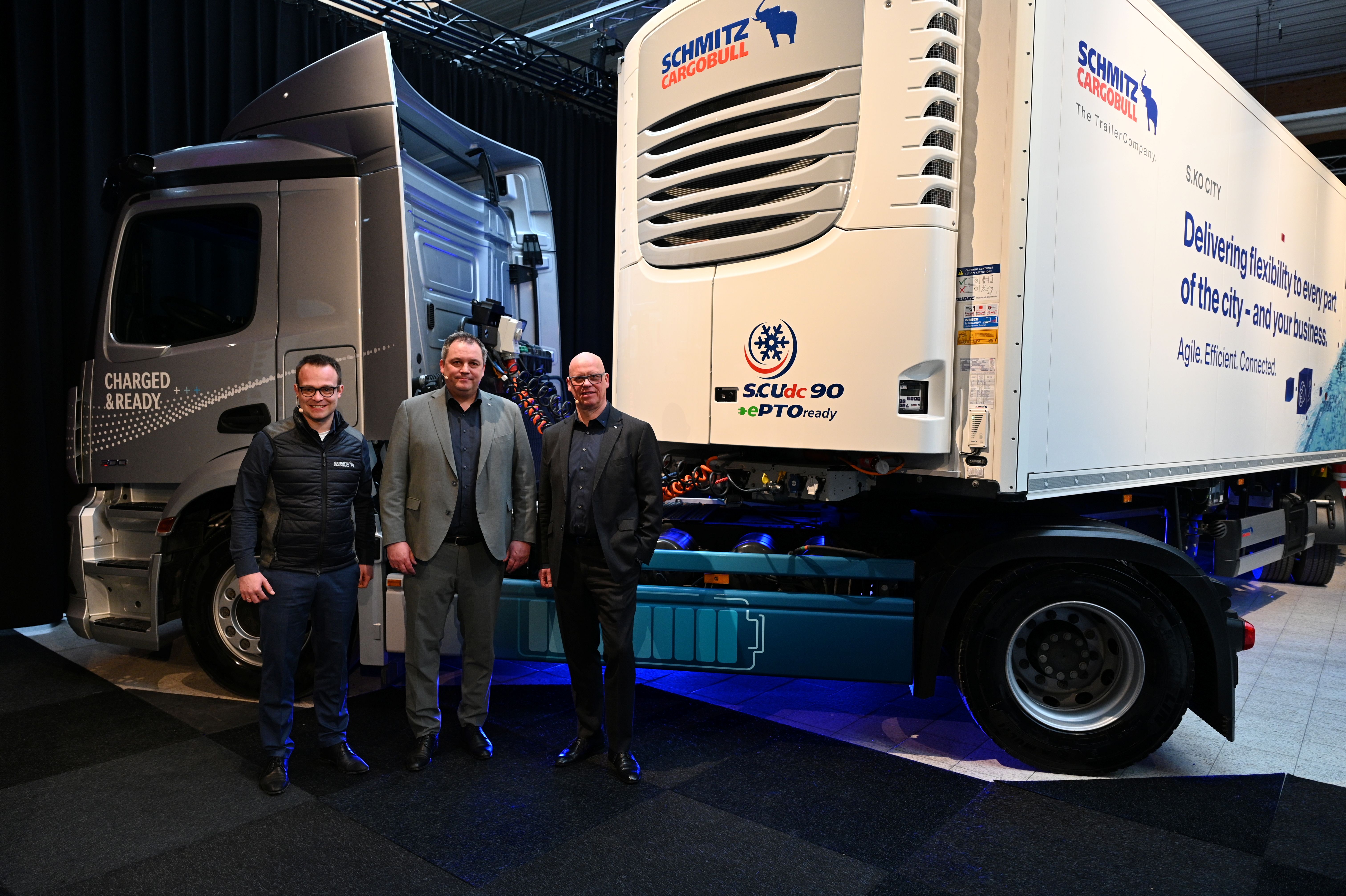 Image 3: Speaker: f.l. Jonathan Steckel, Product Manager Cargobull Cool GmbH, Ralph Kleideiter, CSO Schmitz Cargobull and Dr. Norbert Flacke, Managing Director Cargobull Cool GmbH