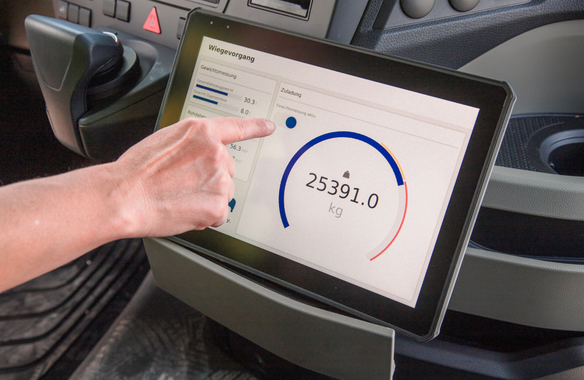 The onboard-weighing system allows the driver to determine and document the vehicle's payload at the loading site. There is no need to drive to a stationary check weigher, which saves fuel and time and reduces CO2 emissions. Operation is intuitive and can be carried out via the screen or the beSmart app. The loading data can be called up for the driver directly after the weighing process. With Schmitz Cargobull TrailerConnect® telematics, the data is transferred to the portal for further processing.