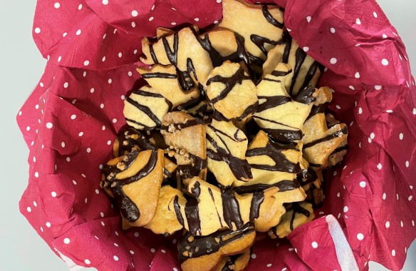 Knead all the ingredients into a firm dough and let it rest, covered, in the refrigerator for 1 hour. Then put the dough through a mincer with an attachment for piping biscuits and make any desired biscuits. Place the biscuits on a baking tray lined with baking paper. Bake in a preheated oven at 180°C on the second shelf from the bottom for approx. 10-15 min.