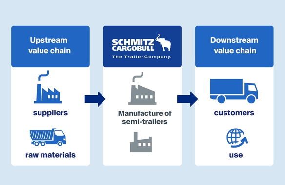 Our contribution to sustainable logistics is twofold: on the one hand, we increase efficiency and safety in road freight transport through innovative products, digital services and sustainable concepts. On the other hand, we are actively working to reduce emissions along the entire value chain – both in the processing of emission-intensive materials such as steel and aluminium and in the use phase of our vehicles.