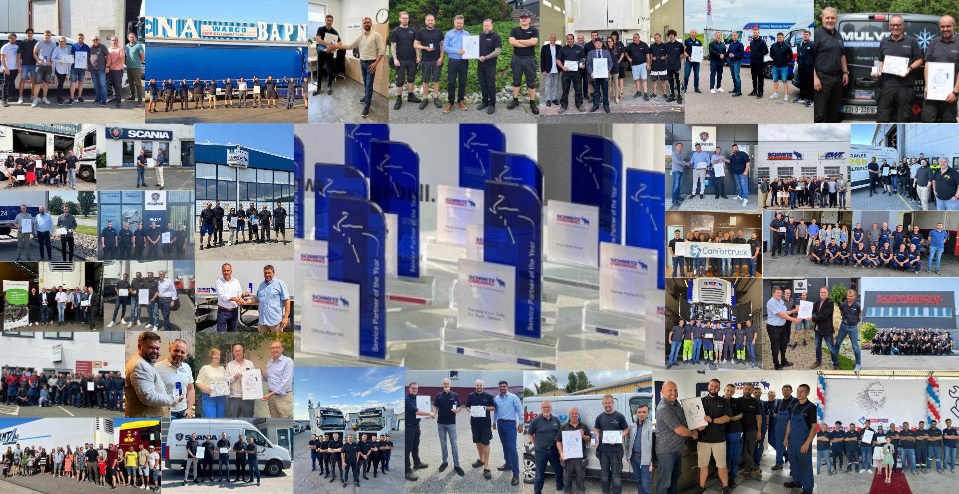 Pie de foto 1: Los 33 Servicios Oficiales de Schmitz Cargobull galardonados con el premio a mejor taller del año.