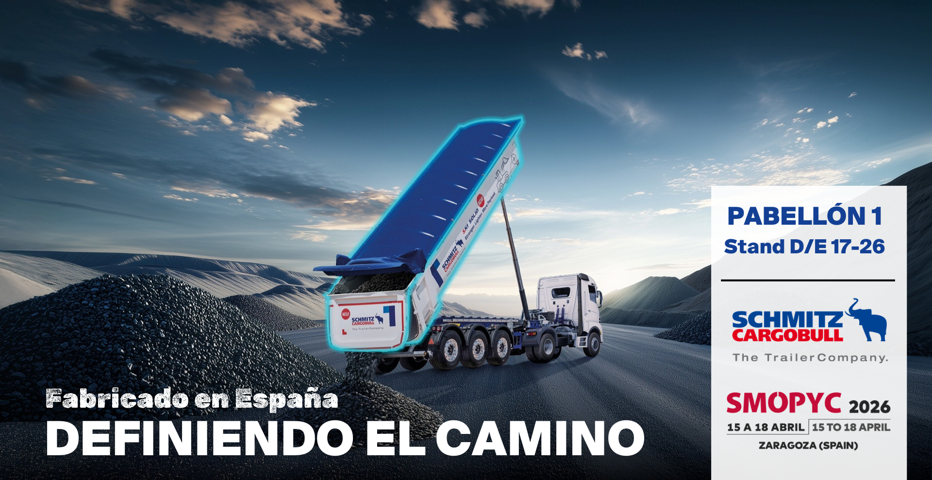 Marzo 2026 - Schmitz Cargobull Ibérica estará presente en la vigésima edición de SMOPYC, que se celebrará del 15 al 18 de abril de 2026 en la Feria de Zaragoza. La compañía ya participó en 2023 con un resultado sobresaliente en ventas de bañeras, y esta vez llega con una gama aún más evolucionada en el Pabellón 1, Stand D-E / 17-26.