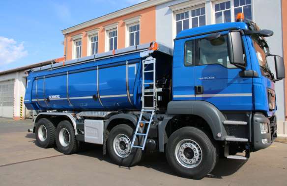 La carrocería basculante para camión rígido M.KI con caja redonda de acero y aislamiento térmico integral conforme a la norma DIN 70001 facilita el transporte de cantidades más pequeñas de asfalto para la construcción de carreteras.