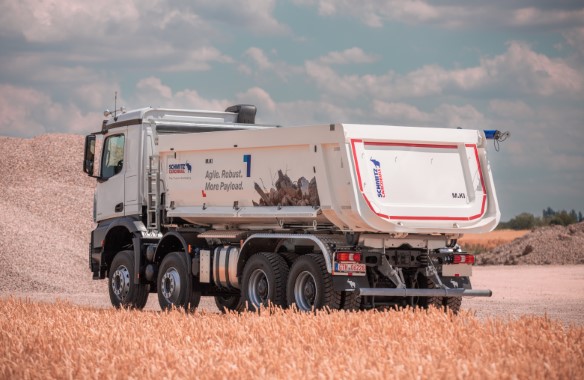 Schmitz Cargobull offers the perfectly fitting M.KI body with a volume of 16 to 23 m³ for the 4-axle motor vehicle. The basis for the motor vehicle bodies is the proven steel round body made of highly wear- and bulge-resistant steel, similar to the tipper trailer S.KI.Individual for your use