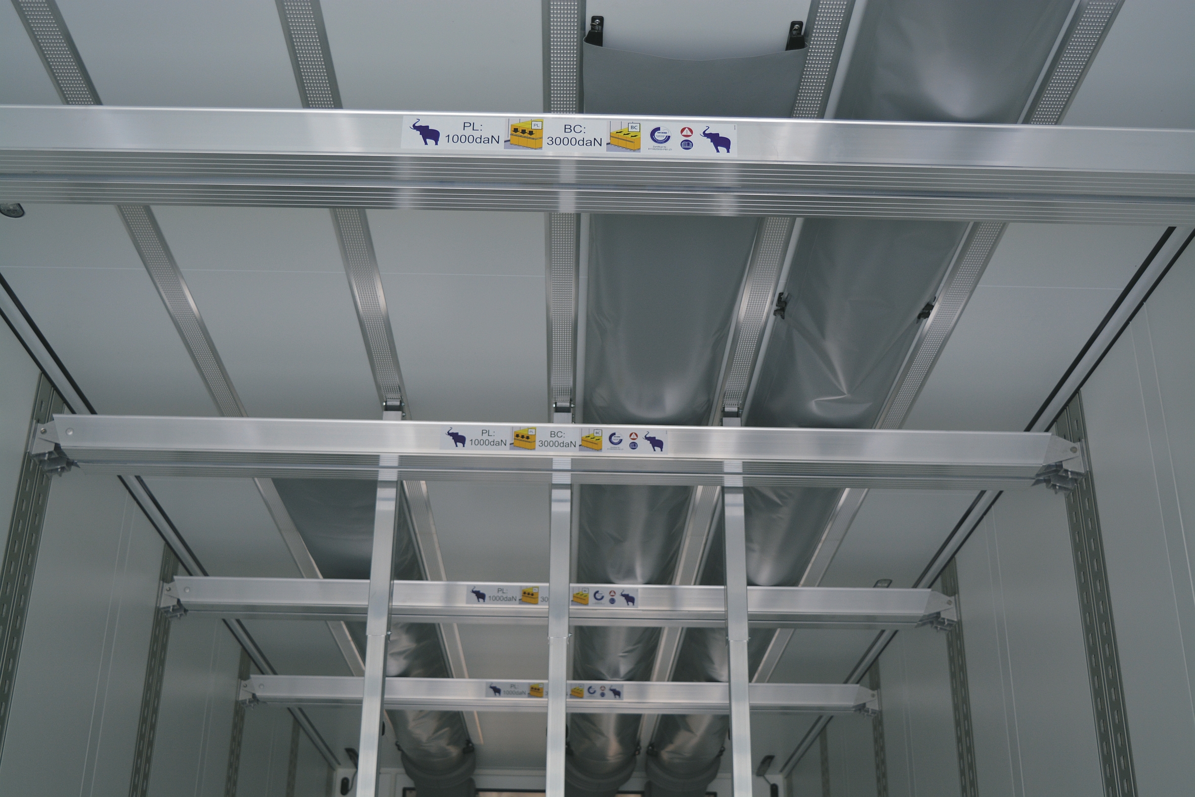 The innovative mounting of the air ducts using quick release connections enables easy and hygienic cleaning. The reliability of the new air distribution system has been officially confirmed: DEKRA has certified the test procedure for the uniform air distribution when loaded. Reliable and efficient load securing is also guaranteed. The vertical load securing beams can be positioned quickly and easily between the air ducts to secure the goods.