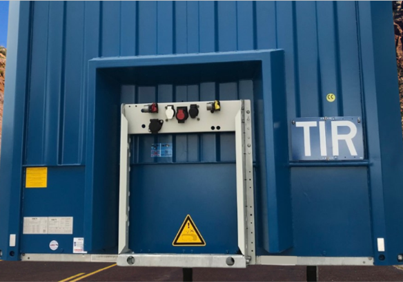 When frequently loaded with a forklift truck, the floor plate is subject to increased wear. For protection, an additional floor plate is installed at the rear portal, which extends the service life of the floor. The forklift axle load is 9.5 tonnes.