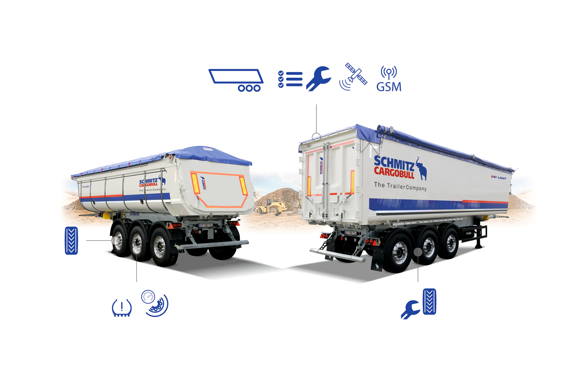 La nostra telematica TrailerConnect® nel semirimorchio ribaltabile S.KI, con CTU3 come controller centrale, è perfetta per il collegamento in rete intelligente di tutti i dati del rimorchio da EBS, con la tecnologia dei sensori opzionale (incluso il monitoraggio della pressione dei pneumatici) e l'hardware estremamente robusto. Il sistema viene visualizzato e parzialmente controllato tramite il portale telematico di facile utilizzo TrailerConnect®. Con la telematica del rimorchio, ottimizzi la tua spedizione, mantieni una panoramica nella gestione della flotta e gestisci al meglio la tua manutenzione. Riduci i costi e allo stesso tempo aumenta la disponibilità dei tuoi rimorchi