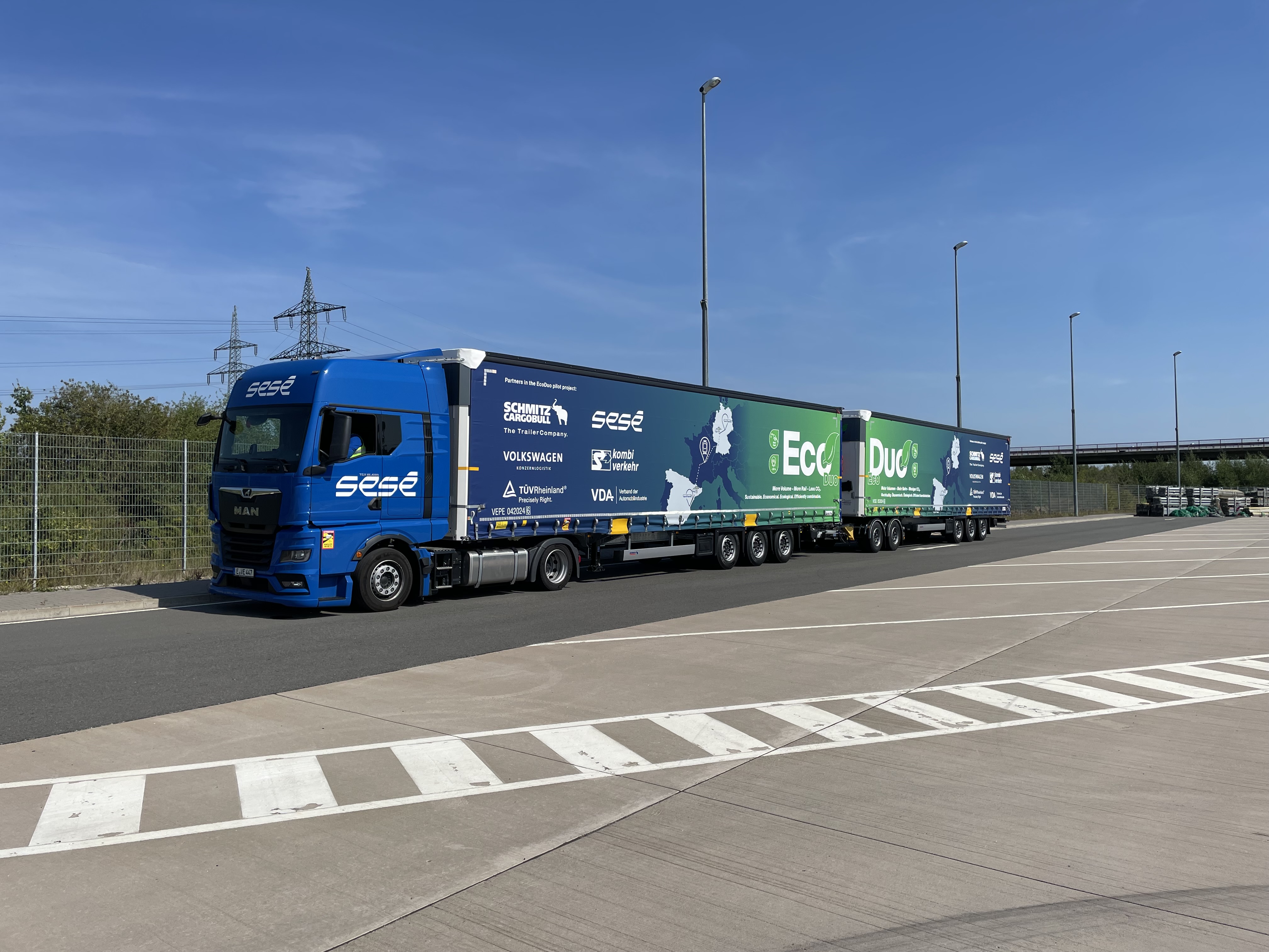 The Volkswagen Group is providing the fixed transport route; prior to the project, the route was served exclusively by HGVs taking production containers between Wolfsburg and Spain. Now, the global logistics provider Sesé will be driving the EcoDuo from the VW plant to the terminal in Lehrte, which is run by two German transshipment companies Deutsche Umschlaggesellschaft Schiene-Straße and Kombiverkehr.