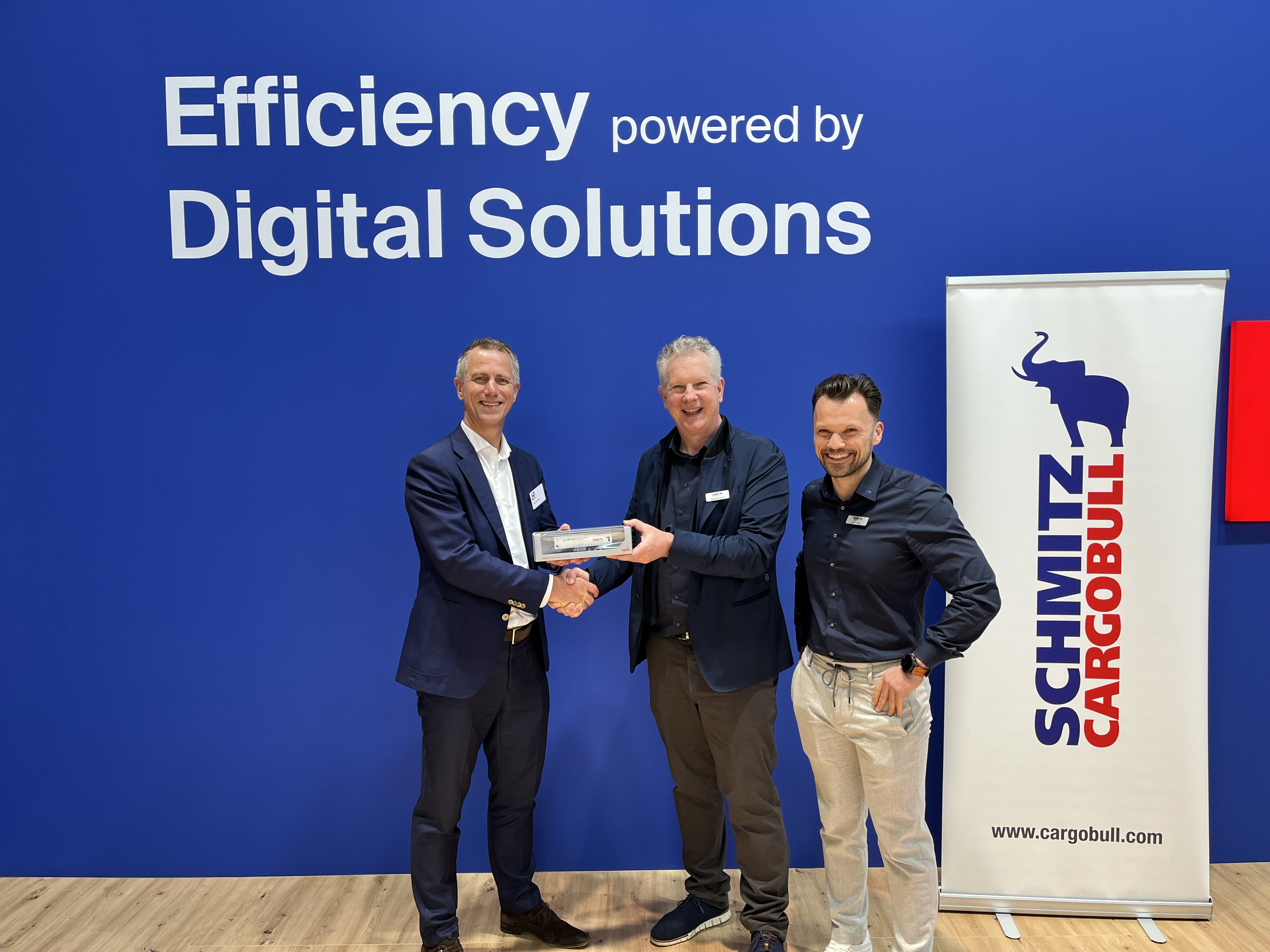 From left: Happy about the further cooperation: Theo de Vries, Vice President Services and Insight, TIP Group, Andreas Schmitz, Chairman of the Board Schmitz Cargobull AG, Simon Mols, Head of Service Sales, Product Line Digital Services, Schmitz Cargobull