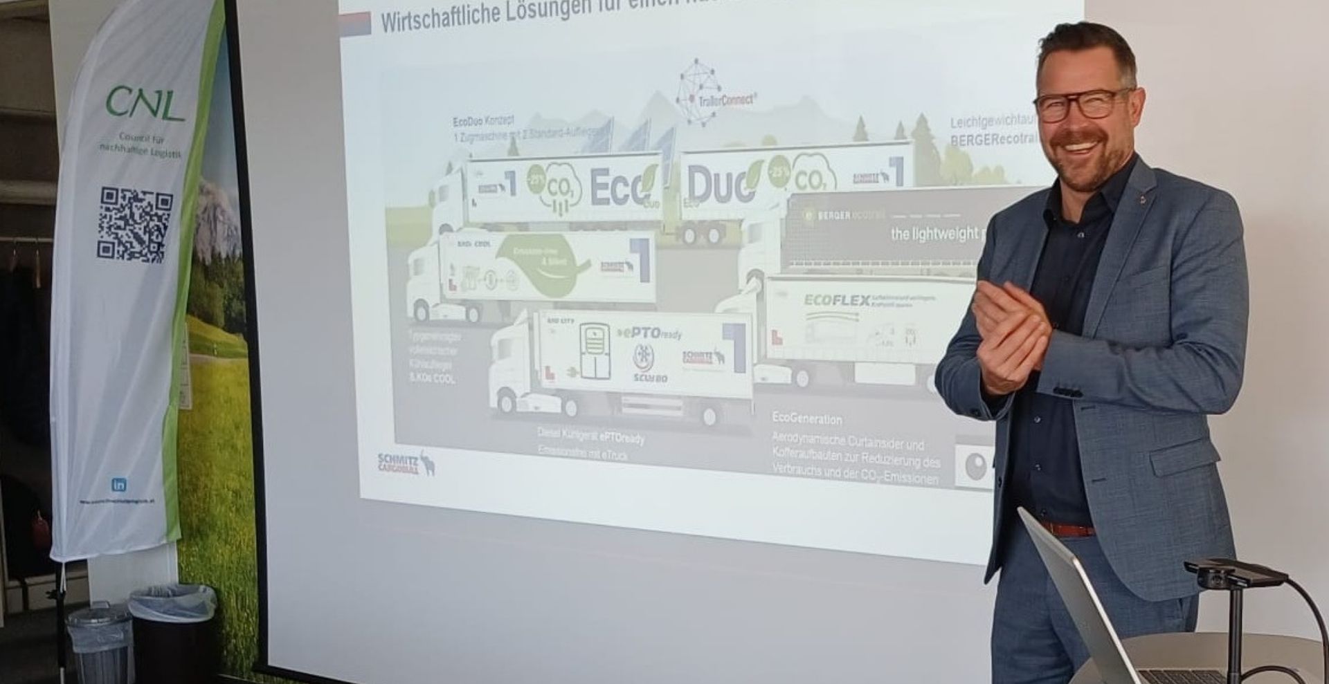 December 2025 - Schmitz Cargobull presented its all-electric S.KOe COOL semi-trailer at the "Council for Sustainable Logistics" (CNL) workshop in Austria. The event took place at Austrian logistics expert Schachinger Logistik and provided a platform for exchanging ideas on innovative solutions for decarbonising freight transport.