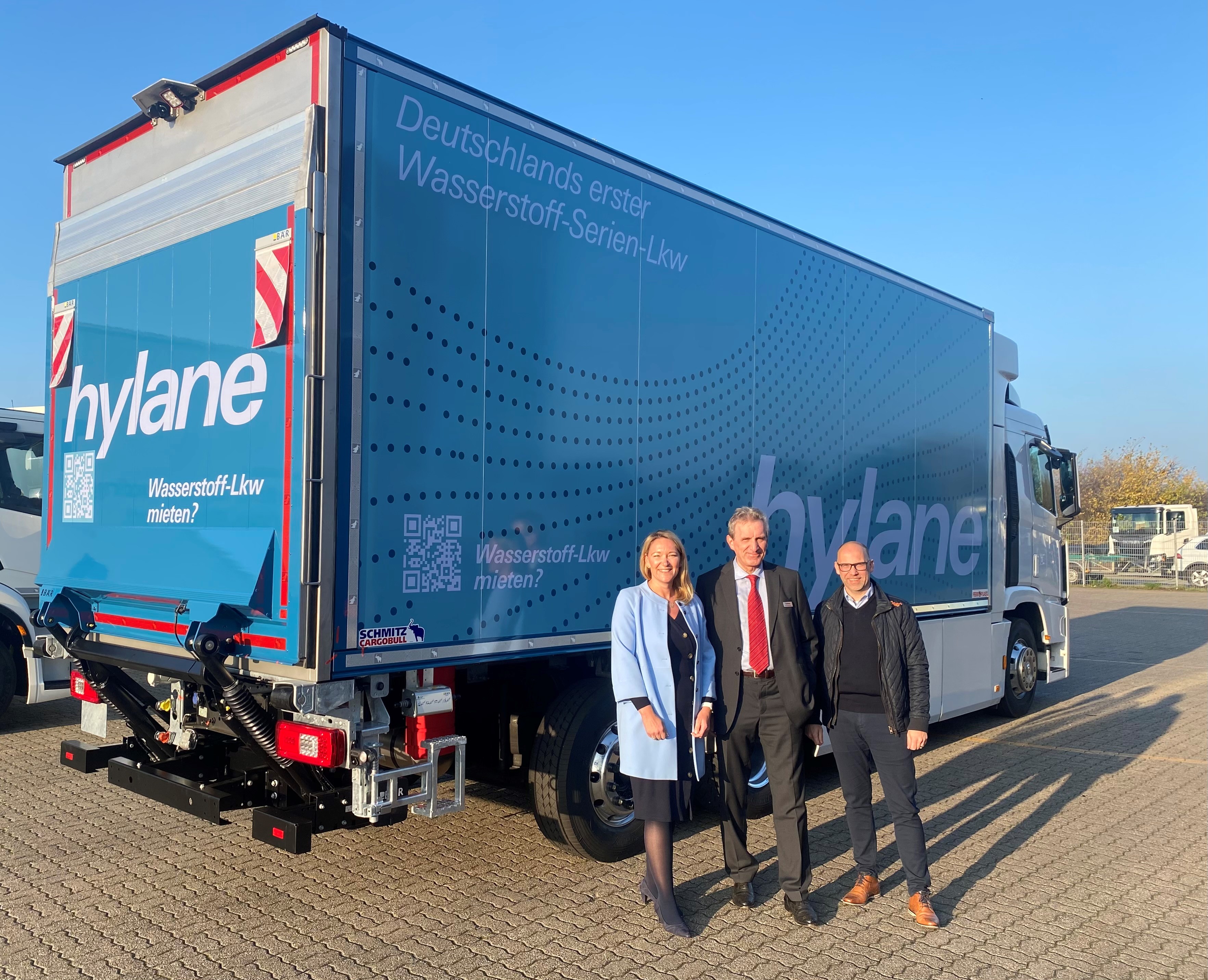 " As the first hydrogen series truck to be approved in Germany, we were able to show the vehicle together with Schmitz Cargobull at the BMDV conference "Climate-friendly commercial vehicles" in Berlin. There we were also allowed to present our concept for the practical use of the trucks in detail", says Sara Schiffer, Managing Director, HyLane GmbH. “Vehicles of the type "XCIENT Fuel Cell" will be prepared – depending on customer requirements - for their use on the road. Refrigerated and dry freight boxes are mounted on the motor vehicle chassis in order to be able to safely transport the goods. Some of the vehicles will also be fitted with a refrigerated trailer."